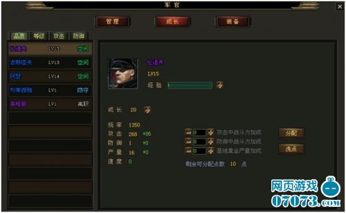 每支军队都需要军官的带领才能攻城掠地,军官能提升军队的战斗力,是《网页游戏私服》中最重要的单位。