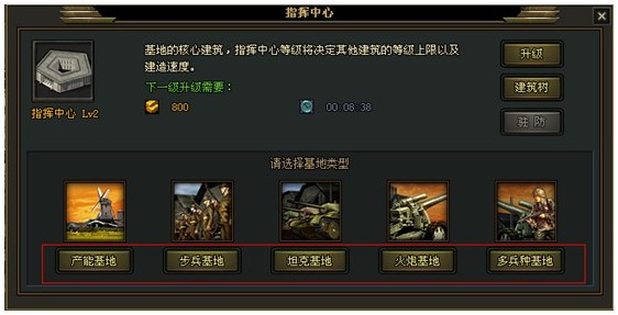 坦克基地:能增加坦克招募队列最多达到5条,总队列数达到8条,但对黄金产量没有任何提升;