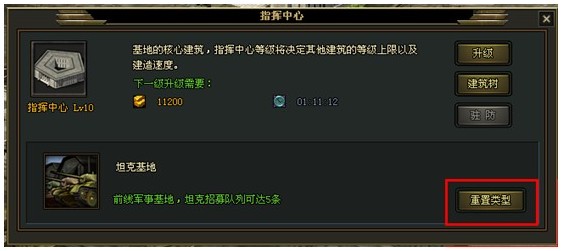 如玩家在升级后想改变基地的类型可以选择“重置类型”,重新选择基地类型。