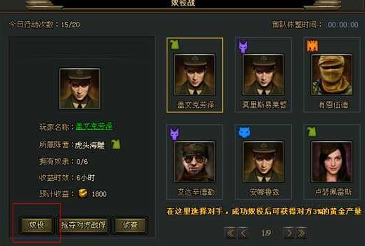 在uyi4游戏《网页游戏私服》中一旦自己被其他玩家奴役了,那么在郊外的界面基地上空,会有一个玩家头像,点击基地,可以在阵营频道中向其他玩家求救,也可以自己进行反击,注意了,失败会扣除一定奴役战声望的,会影响到奴役战排名!当然,胜利了,也会有奖励的。